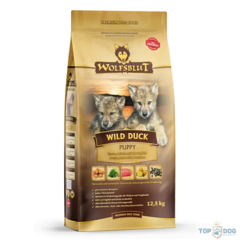 Teljes Wolfsblut Wild Duck Puppy Kacsa Burgonyával száraz kutyatáp 12,5 kg termékleírás