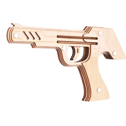 1 kép WoodCraft 3D fa mechanikus puzzle - Gumiszalag pisztoly