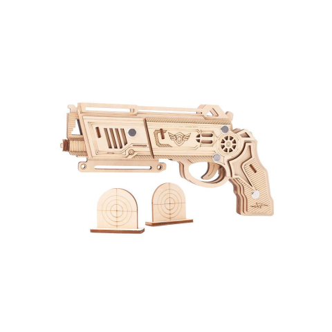 Woodcraft 3D fa mechanikus puzzle - Gumiszalagos pisztoly Falcon natural