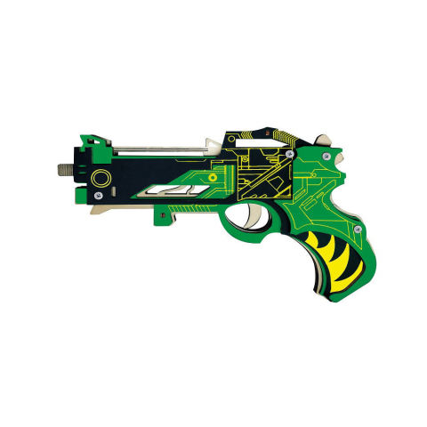 Woodcraft 3D fa mechanikus puzzle - Virbius gumiszalag pisztoly színes