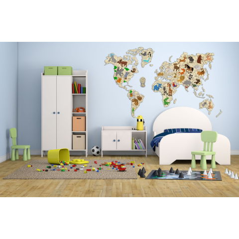 Információk A fából készült állatok világtérképe a gyönyörű dekoráció mellett remek oktató elem lehet a legkisebbek számára. Érdekes oktatási elem lehet, amely ráadásul elindítja benne a világ körüli utazási vágyat. Térképünk további előnye, hogy a gye