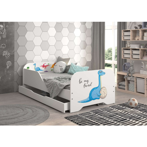 MIKI Dino Barát Gyermekágy 140x70 cm: Kényelmes és biztonságos alvás 🦖 Ez a gyönyörű MIKI gyerekágy tökéletes választás a kisdinóknak! Vidám dinoszaurusz mintával díszített, 140x70 cm-es fekvőfelülettel rendelkezik, így biztosítva a kényelmes és biz...