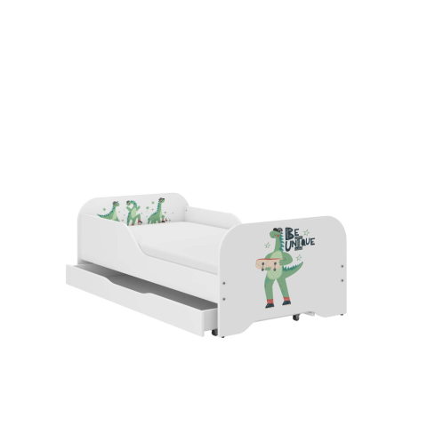 MIKI Dino Utazás gyerekágy 160x80 cm - Kényelmes és biztonságos alvás 🦖 Ez a gyönyörű MIKI gyerekágy tökéletes választás a kisdinóknak! Vidám dinoszauruszos mintájával feldobja a gyerekszobát, míg a biztonságos kialakítás gondoskodik a nyugodt alvás...