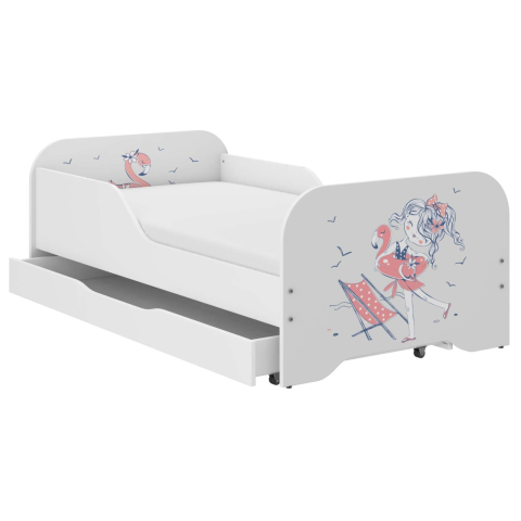 MIKI Gyermekágy 160x80 cm - Strandoló Lány mintával: Biztonságos és stílusos ágy gyerekeknek 👧 Ez a bájos MIKI gyermekágy tökéletes választás a kislányok számára. A vidám strandoló lányos mintával díszített ágy nem csak szép, de biztonságos is, kösz...