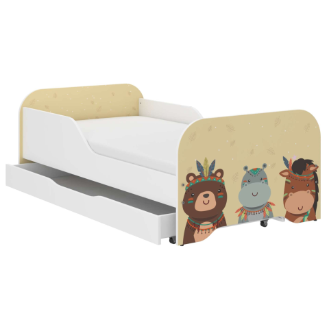 1 kép Wooden Toys MIKI gyerekágy 160x80cm matraccal és ágyneműtartóval - Boho Szafari