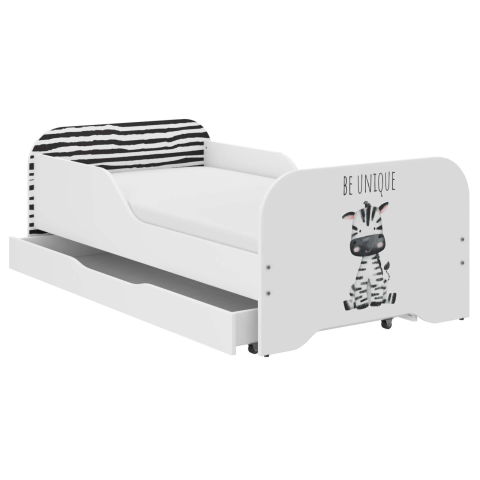 1 kép Wooden Toys MIKI gyerekágy 160x80cm matraccal és ágyneműtartóval - Zebra Szafari