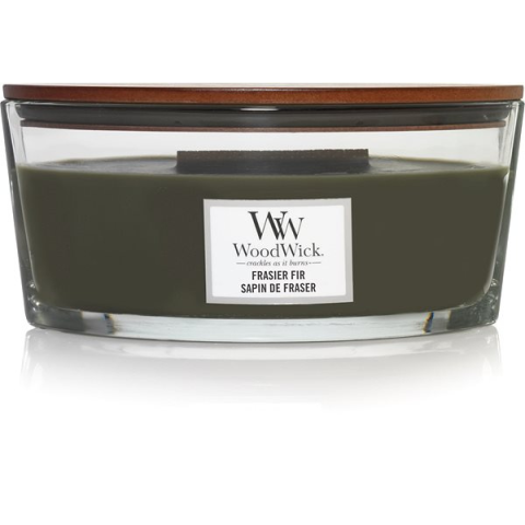 Gyertya - illatos, mindennapi használatra való, üde és fás illat, fa kanócos, üvegedény, hajó alakú, anyaga szójaviasz, zöld kivitel, égési idő 40 óra A WoodWick Frasier Fir gyertya fás illatával segít megteremteni a kényelem és az otthonosság egyedi hangulatát. A frissen vágott fenyő illata, amelyet az ámbra meleg jegyei egyensúlyoznak, elkezd szál