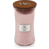 Gyertya - illatos, mindennapi használatra való, virágos és fás illat, fa kanócos, üvegedény, hosszú kerek alakú, magas, anyaga szójaviasz, rózsaszín kivitel A pihenés és a kikapcsolódás pillanata nem száz százalékos, ha nem hatunk minden érzékszervünkre. A WOODWICK Rosewood gyertyával érezni fogod a gyönyörű fás illatot, amelyet a fa pattogásának lágy han