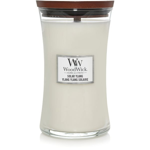 Gyertya - illatos, mindennapi használatra való, üde és gyümölcsös illat, fa kanócos, üvegedény, henger alakú, anyaga szójaviasz, fehér kivitel, égési idő 120 óra A WoodWick® nagyméretű gyertyája elegáns homokóra formában, eredeti fa tetővel igazi meghittséget varázsol otthonodba, és hosszan tartó illattal tölti meg a teret. A szabadalmaztatott Pluswick® fa kan