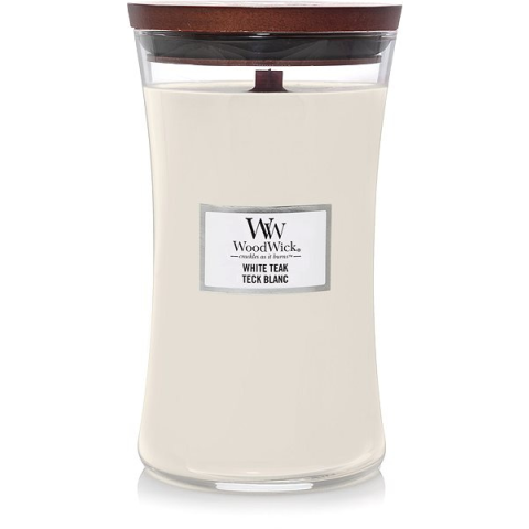Gyertya - illatos, mindennapi használatra való, üde és fás illat, fa kanócos, üvegedény, henger alakú, anyaga szójaviasz, fehér kivitel, égési idő 120 óra A WoodWick White Teak fás illatú designer gyertya segít a kényelem és az otthonosság egyedi hangulatának megteremtésében. A tenger, a levendula, a meleg moha és a fa illata kezd szétáradni a lakásban