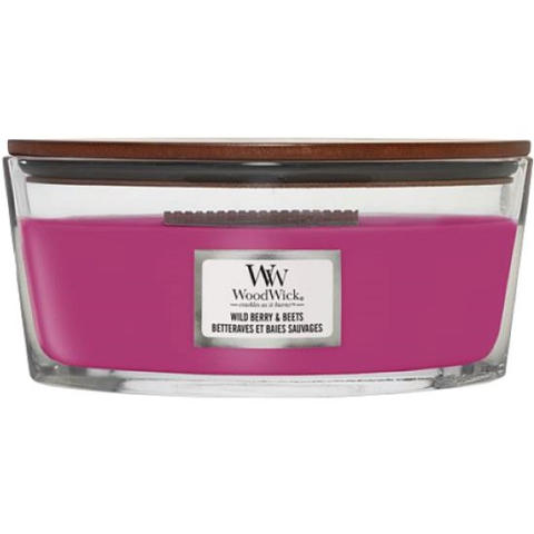 Gyertya - illatos, mindennapi használatra való, gyümölcsös illat, fa kanócos, hajó alakú, anyaga szójaviasz, rózsaszín kivitel, égési idő 40 óra A WoodWick Berry & Beets gyümölcsillatú gyertya segít a kényelem és az otthonosság egyedi hangulatának megteremtésében. Az erdei gyümölcsök és a cékla álomszerű illata, amely kellemesen keveredik
