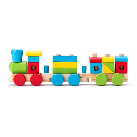 Játékvonat - anyaga fa, kézi irányítású, mechanikus, hosszúsága 43 cm, ajánlott 2 éves kortól Fa összerakható tehervonat két vagonnal a Woody márkától, 44,5 × 13,5 × 9 cm-es méretben. A tehervonat rudakat tartalmaz, amelyekre színes kockákat lehet felfűzni. A vonatot szét lehet szedni és építő