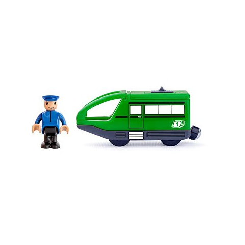 Vasútmodell kiegészítő - méretei 16 × 7 × 5 cm, 3 éves kortól ajánlott A modern zöld elektromos kisvonat 16 x 7 x 5 cm méretekkel a Woody kisvasút része. Az első és hátsó meghajtású mozdony kapcsolója a tetején található. A termék része a mozonyvezető is, amely a mozdony