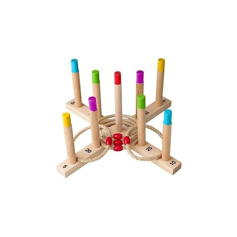 Célozz és dobd pontosan a kis karikákat, hiszen ebben a játékban csakis a jó dobásokkal kerülhetsz közelebb a győzelemhez! A fából készült karikadobálós játék a szabadban vagy a szobában is használható, a játék garantáltan megalapozza a vidám hangulatot. Az egyes pálcák más-más összeget rejtenek, így egy elvétett dobással könnyen hátrányba kerülhetsz. Vajon sikerül a legnagyobb