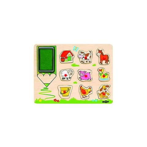 Nem csak a különböző formákkal és farm állatokkal ismerkedhetnek meg a kicsik a játék során, de a nyomdáknak köszönhetően a rajzaikat is izgalmasabbá tehetik. A legkisebbek malacot, lovacskát vagy bárányt is nyomdázhatnak a formákkal, hiszen a készlet része a tintapárna, melyre csak rá kell helyezniük a fa állatformát, aminek alján gumi minta található. A papírra nyomva máris láth