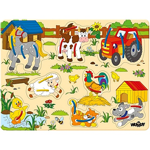 1 kép Woodyland Fűzhető fa formapuzzle farm állatokkal