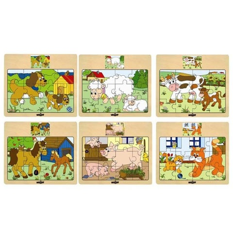 Találd meg mindegyik állat helyét a formapuzzle játékon, hiszen csak így lehet teljes végül a kép. A fa elemekkel helyükre tehetik a kutyusokat, a cicákat, a lovacskákat, és még sok más állatot is, amelyek a háziállatként élnek velünk emberekkel. A gyerekek a színes fa puzzle elemekkel nem csak jól szórakoznak majd, hanem készségeiket is fejlesztik. Formafelismerést és a logikát is fejleszt