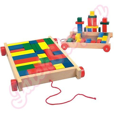 Húzható kiskocsi fakockákkal