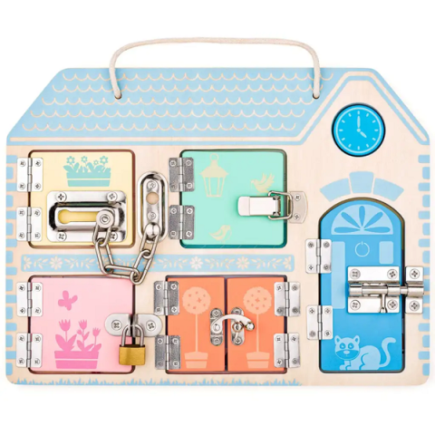 Kulcsok és zárak matatófal készségfejlesztő játék - Woodyland