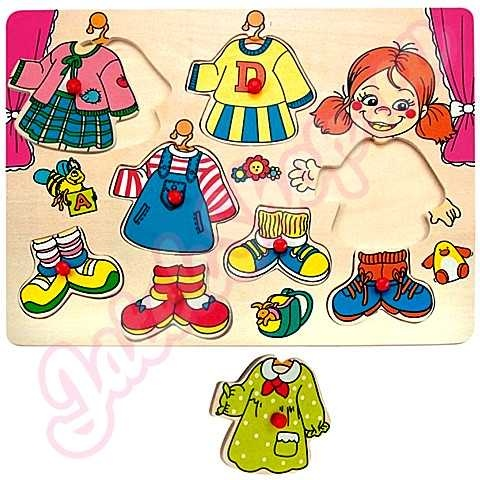 Lányos öltöztető fa formapuzzle
