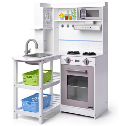 A gyerekek szeretnek minden olyan dolgot lemásolni, amit a szülők is csinálnak, így örömmel tevékenykednek a konyhában is. Ebben a készletben egy szuper sarok konyha szett található, amiben mindent megtalálnak a kicsik, ami remek játékra ad lehetőséget. A konyharészlet nagy részét egy sütő és gáztűzhely teszi ki ami felett egy páraelszívó és egy mikrohullámú s