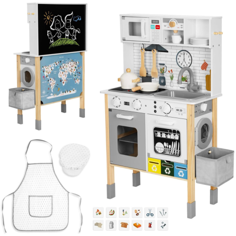 A Woopie Green multifunkcionális konyhakészlete egy fa konyha, amelyet a főzést és a világ felfedezését szerető kisgyermekek számára terveztek. A készlet több mint kilenc különböző funkciót ötvöz, elősegítve a kreativitást és a mindennapi készségek fejles