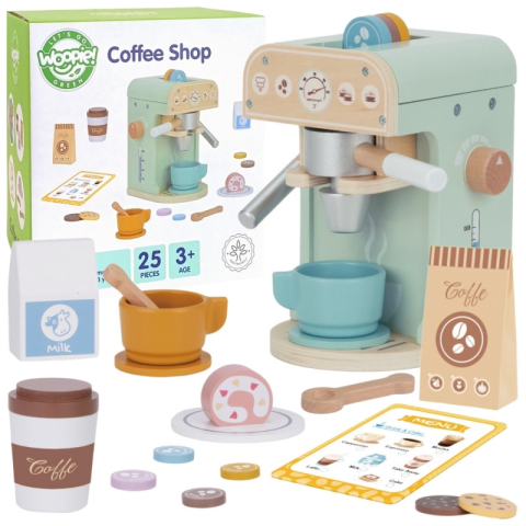 Tökéletes szerepjáték a kis baristáknak és kávérajongóknak! Változtasd a gyerekszobát egy igazi hangulatos kávézóvá a WOOPIE márka Wooden Cafe készletével, amely a GREEN sorozat részeként készült. Ez az 25 darabból álló, fából készült kávészett nemcsak a