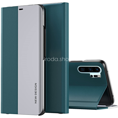 1 kép Wooze Huawei P40, Oldalra nyíló tok, stand, Wooze Silver Line, sötétzöld