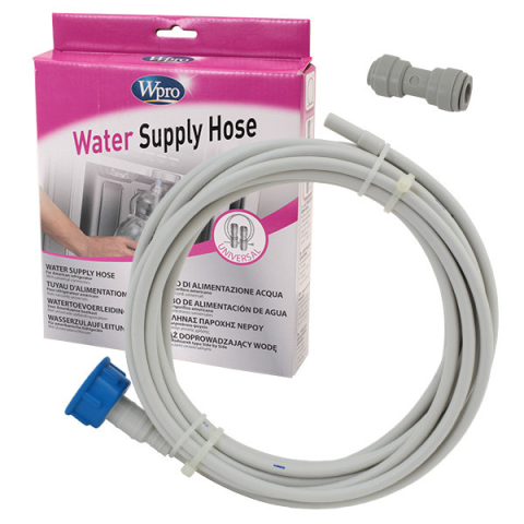 A Wpro 6 m hosszú vízellátó vezetékével az oldalsó hűtőegységet használhatja Könnyen csatlakoztatható a vízellátáshoz egy 3/4 hüvelykes csatlakozóval. Ez egyedileg méretre vágható és általánosan használható. Két tömlőcsatlakozóval 1/4 és 5/16