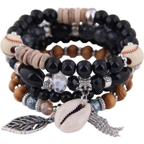Wrap Q1 női gyöngyös karkötő, fekete - 4 db (16399)