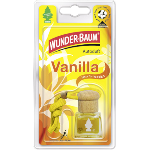 Wunderbaum illatosító, fakupakos - 4,5ml - vanília illatú - használat:a visszapillantó tükörre függesztve kb 3cm-re függlegesen.