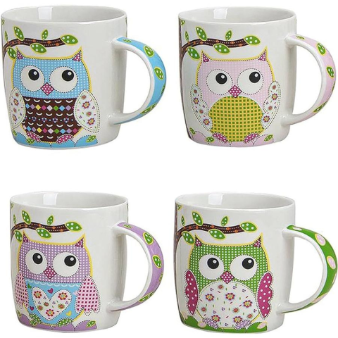 Baglyos porcelánbögre négyféle kedves mintával minden könyvrajongónak.