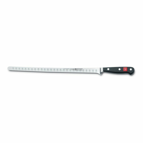 Wüsthof Classic 32 cm-es lazackés: Tökéletes szeletek könnyedén 🔪 A Wüsthof Classic lazackés ideális választás a lazac vékony, egyenletes szeletekre vágásához. A penge speciális kialakítása megakadályozza, hogy a szeletek rátapadjanak, így mindig pro...