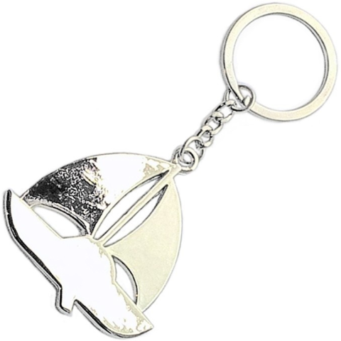 Csillogó, fényes ezüst színű vitorlás alakú fém kulcstartó, gravírozható felülettel.