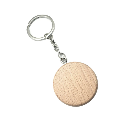 Kerek alakú fa kulcstartó , fém kulcskarikával.