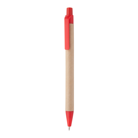 Karton golyóstoll műanyag klipsszel és piros színű kiegészítőkkel.