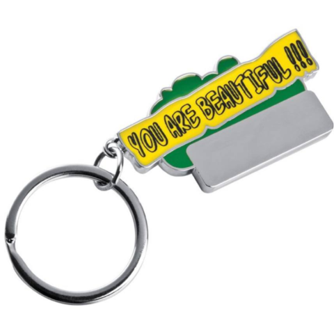 "You Are Beautiful" feliratos fém kulcstartó, színes festett és sima gravírozható felülettel.