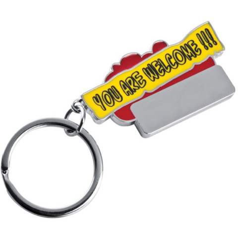 "You Are Welcome" feliratos fém kulcstartó, színes festett és sima gravírozható felülettel.