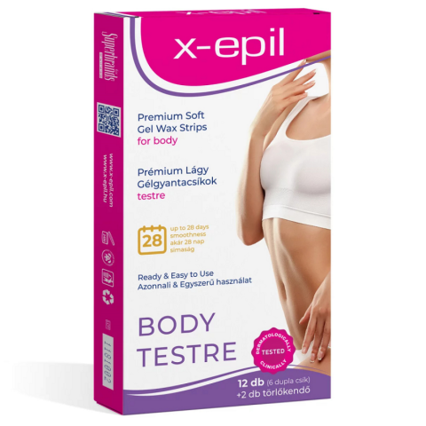 X-Epil használatra kész szőrtelenítő gyanta csík testre 12db