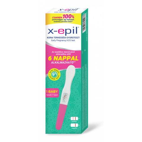 Az X-Epil korai terhességi gyorstesztje egy vizeletsugaras terhességi teszt, mellyel perceken belül csaknem 100% pontossággal állapíthatod meg a terhesség tényét. Az X-Epil Korai terhességi gyorsteszt pen extra magas érzékenysége miatt akár már 6 nappal a