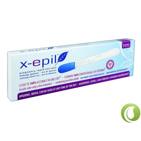 Az X-Epil terhességi gyorstesztje egy vizeletsugaras terhességi teszt, mellyel perceken belül csaknem 100% pontossággal állapíthatod meg a terhesség tényét. A teszt nagy előnye, hogy semmilyen egyéb kiegészítőt nem igényel. A doboz tartalma 1 db terhesség