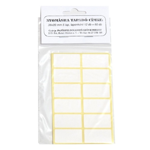 Fóliás etikett 38x20 mm-es méretben. 5 lap, laponként 12 db. etikett.