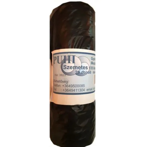 Szemetes zsák újrahasznosított polietilénből. Szemetes kukák, hulladékgyűjtő ládák bélelésére használható strapabíró termék. Zöld színű kukazsák, praktikusan rollba feltekerve, perforáció mentén téphető.
