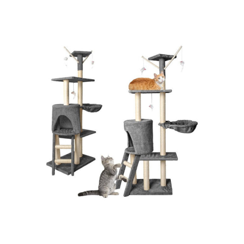 1 kép XAM-100 Macskafa 138 cm, szürke, karmolódeszka, alvóhely, játékok