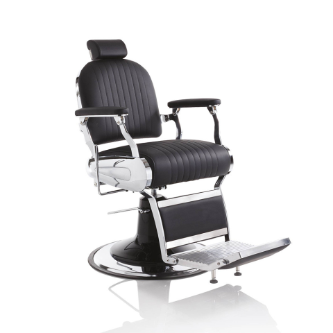 A Hair Cadillac elegáns és nagyszerű barber szék, dönthető háttámlával, kárpitozott lábtartóval és állítható fejtámlával, fekete műbőr borítással áll rendelkezésre. Fekete színével és krómozott elemeivel retro hangulatot idéz a barber szalonodba. A termé