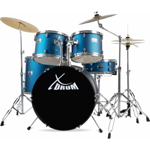 1 kép Xdrum Semi 22" Standard Dobfelszerelés Satin Blue Sparkle Boom Stand + Crash Cintányérral Együtt.