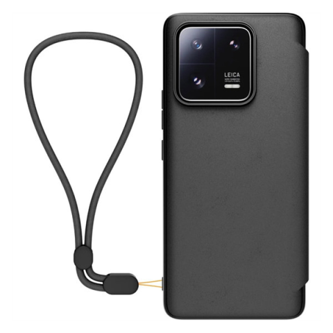 1 kép Xiaomi 13 Pro bőr hatású oldalra nyíló gyári tok karpánttal, fekete