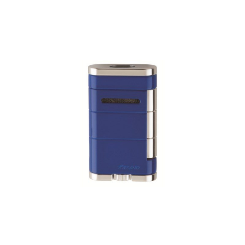 Xikar szivargyújtó dupla szúró lánggal az Allume sorozatból kék színű az elején Xikar felirattal. A 2-es erős Jet lánggal égő öngyújtó oldalára történő nyomással gyullad meg a gáz fúvókákat pedig egy zárófedél védi a szennyeződésektől. A megbízhatóan működő modern megjelenésű piezo gyújtású szivargyújtó alján egy nagy méretű állító kerék segítségével tudjuk állítani a láng méretett. Ez egy a 10 különböző színű Allume szivargy