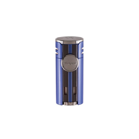 Xikar HP4 Quad Blue - Jet asztali szivargyújtó kék színű. A fém vázas gyújtó elején nagy méretű dupla ablakokkal a gáz töltöttségi szint ellenőrzéséhez, és egy túl méretes állító kerék a szúróláng láng méretének az állításához az öngyújtó az alján után tölthető. 4-es gyémánt alakú szúrólánggal ami a hőt precízen a láng csúcsán koncentrálja így a nagy méretű szivarokat is gyorsan meggyújtja, a gáz fúvókákat egy flip-top fedél védi a