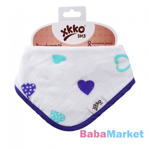 5 kép Xkko bambusz nyálkendő patentos - óceánkék szívek BMBBND026